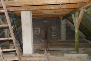 Das Dachgeschoss ist nicht bewohnt , der Fußboden sollte erneuert werden. Das Dachgebälk ist bereits neu.