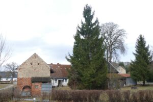 Bauernhof mit Wohnhaus , Stall und Scheune in der Ortslage von Grunow -Dammendorf.