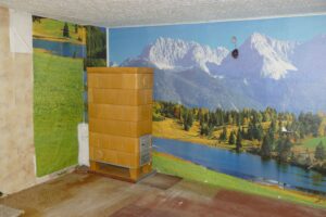 Das massive Wohnhaus unterteilt sich im Erdgeschoss in 4 Zimmern, Küche und Bad.