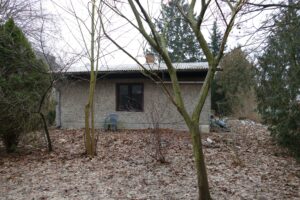 Baugrundstück in einer Seitenstraße von Bernau, bebaut mit einem Kleinsthaus im Bungalowstil.